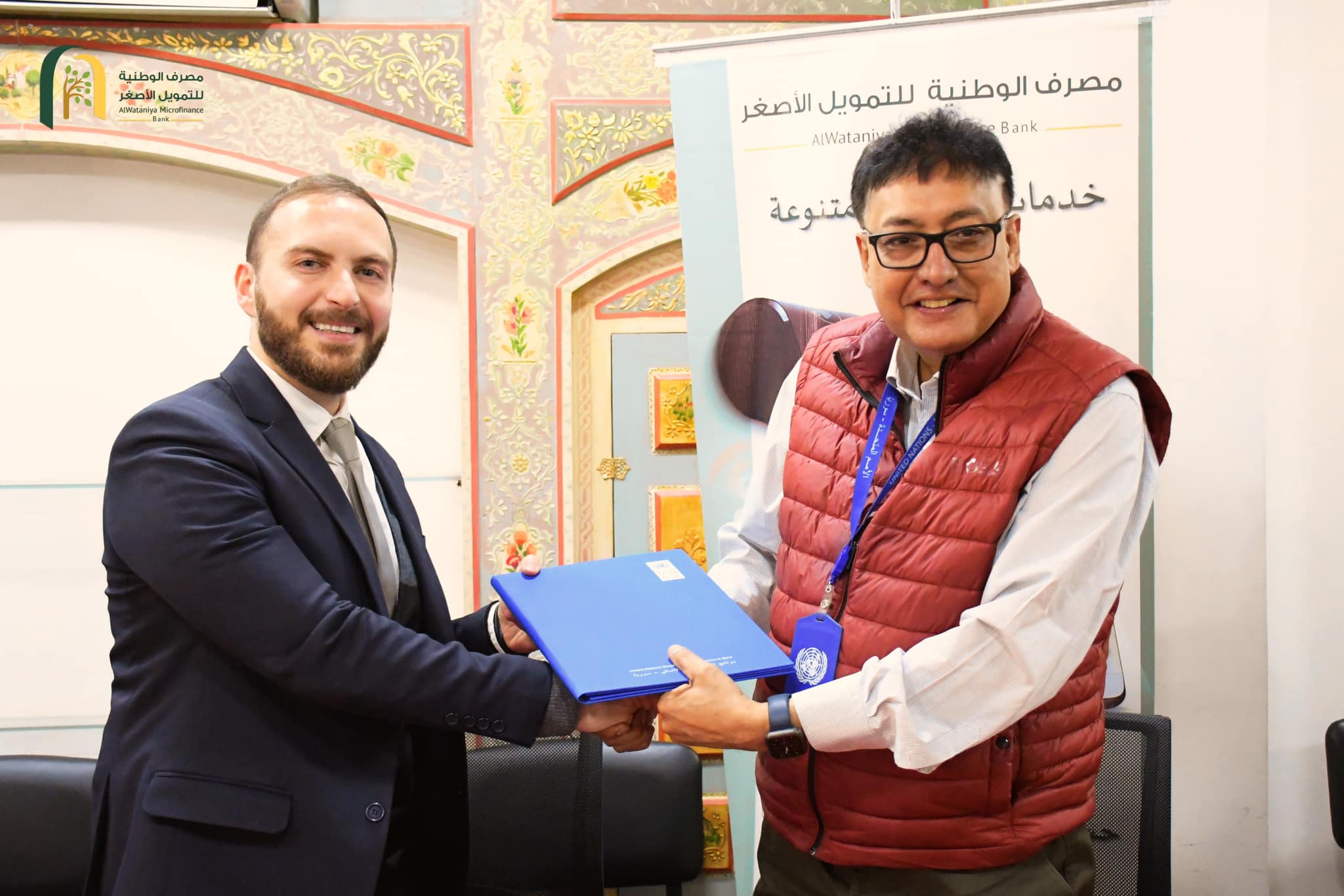وقع مصرف الوطنية للتمويل الأصغر ممثلا" بالأستاذ حازم الدويري الرئيس التنفيذي وبرنامج الأمم المتحدة الإنمائي "UNDP" ممثلا" بالسيد سوديبتو موكيرجي، الممثل المقيم لبرنامج الأمم المتحدة الإنمائي في سورية , اتفاق تعاون إطاري من أجل التعاون المشترك لدعم التنمية المستدامة والشمول المالي
